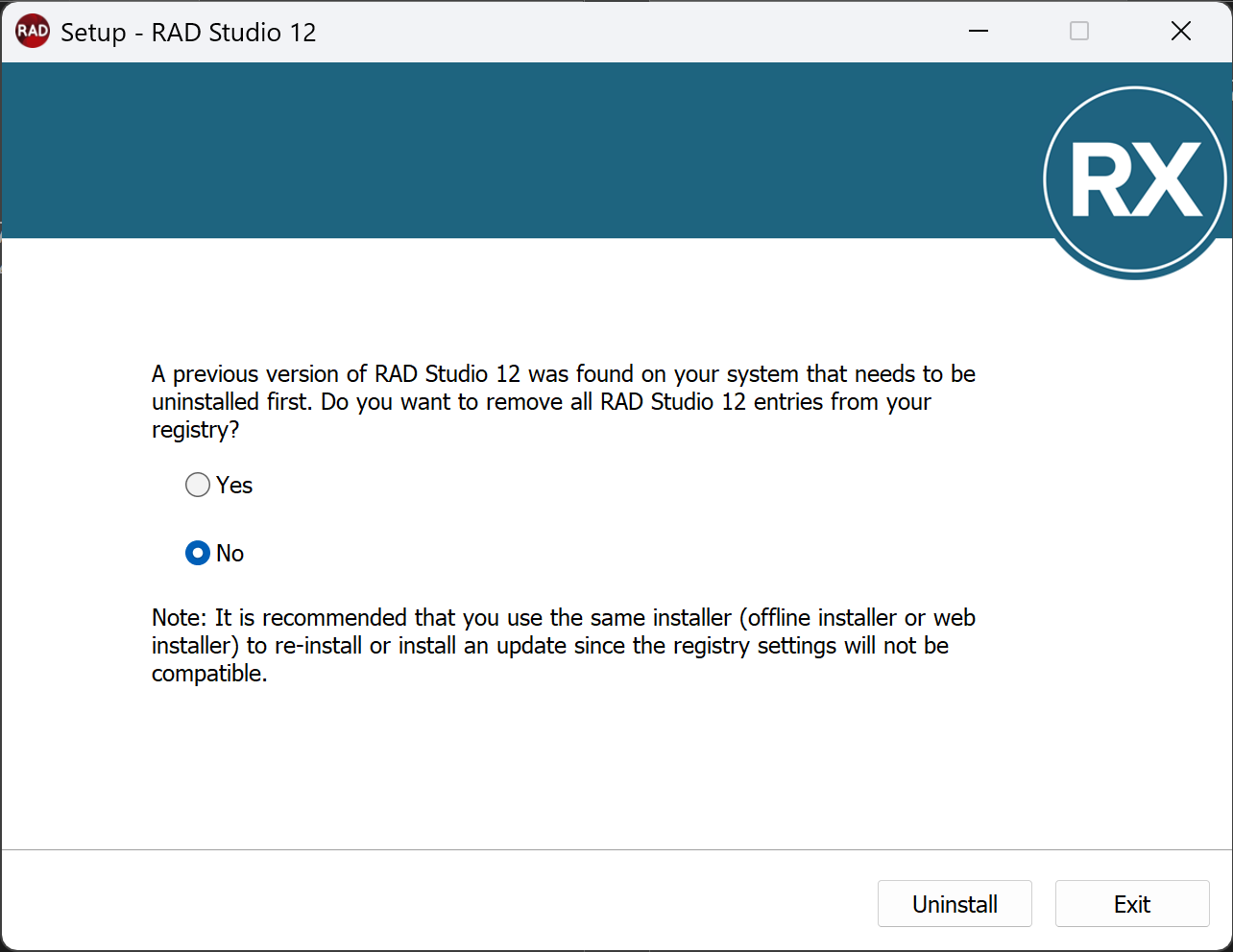 Now close this window and start RAD Studio 12 from the toolbar. You will see again the error message that came up in Step 2.